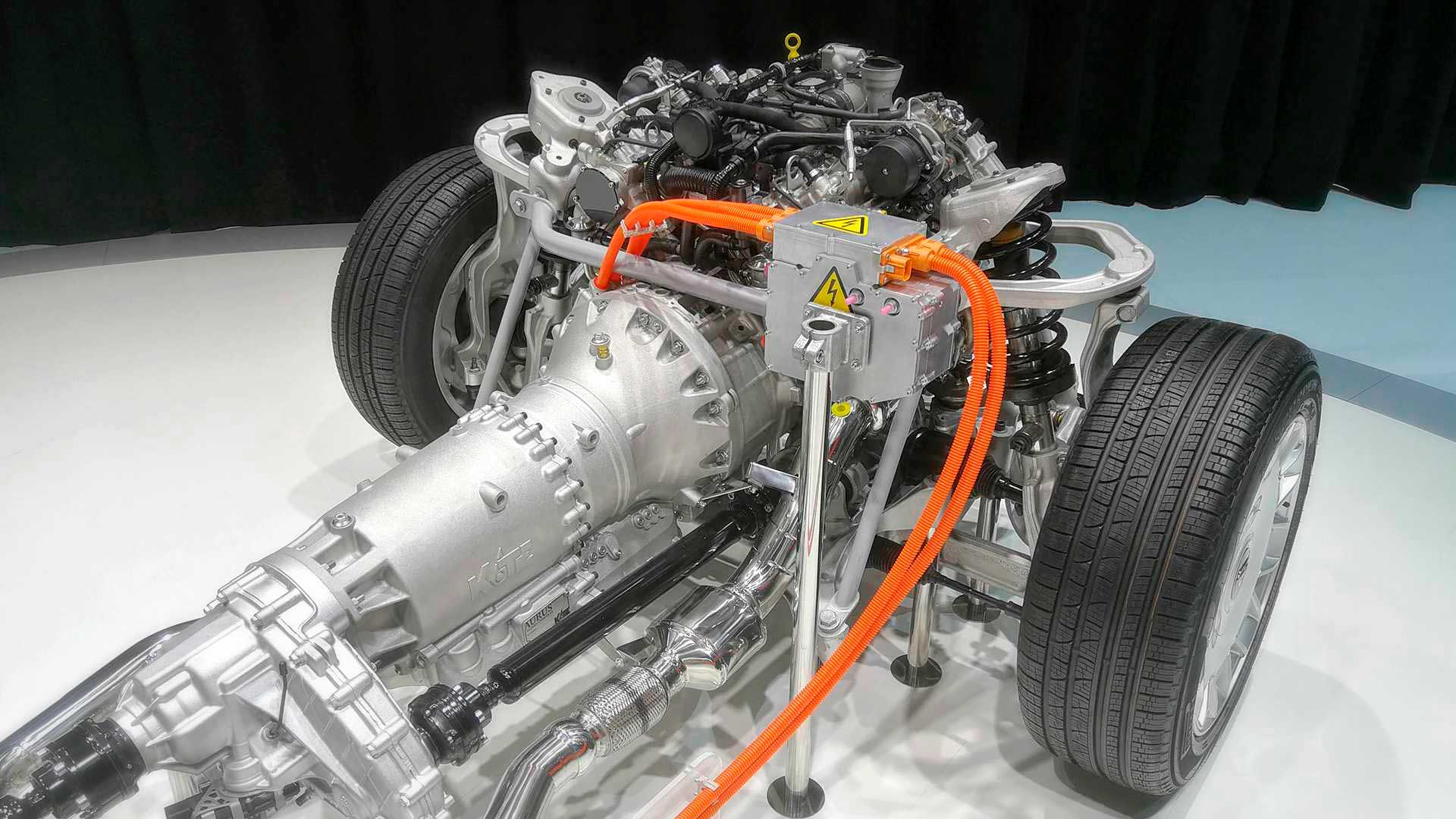 Суммарная мощность агрегата составляет 598 л. с., а крутящий момент - 880 Нм. Ёмкость вспомогательного аккумулятора, установленного перед задней осью, составляет 16 Ампер-часов, о дальности пробега на электротяге не сообщается.
