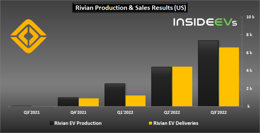 Руководство Rivian заявляет, что общий объём производства «зелёных» машин в 2022 г. составит 25 000 единиц. Для этого с октября по декабрь включительно фирме нужно выпустить 13 000 электромобилей — почти в 2 раза больше, чем в 3-м квартале.