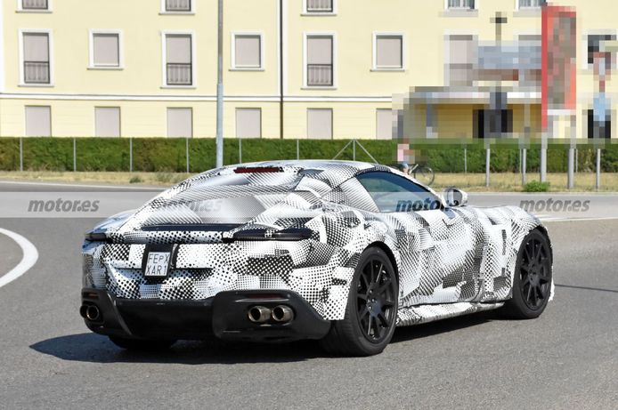 Прототип автомобиля укутан в плотный камуфляж, поэтому обновления в его дизайне рассмотреть не удалось. Пропорциями кузова он похож на актуальный Ferrari Roma — очень длинный капот и смещённый назад салон.