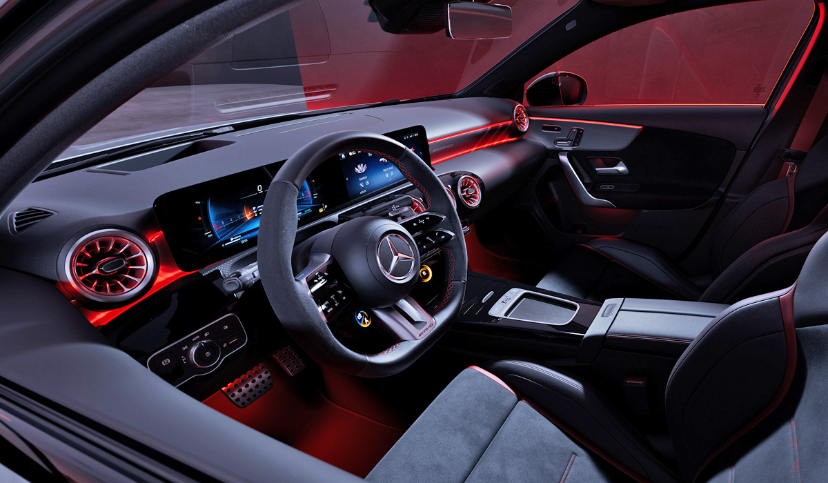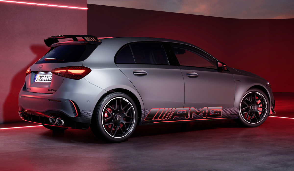 А для Mercedes-AMG A 45 S в качестве опции предлагается стайлинг-пакет Street Style Edition, который включает в себя дополнительный аэродинамический обвес и яркие наклейки на кузов.