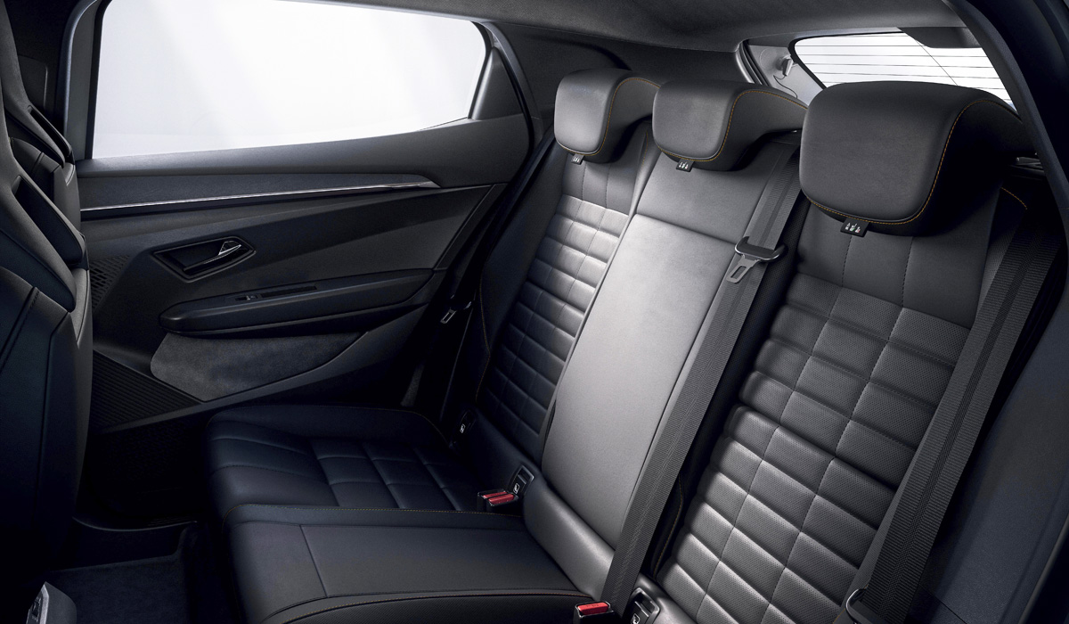 Следует отметить, что почти вся отделка салона, включая синтетическую ткань, эко-кожу и пластик, сделана из переработанного вторсырья. Салон при этом украшен декоративными вставками из шпона Nuo, верхний слой которого сделан из натурального дерева, а также атмосферной подсветкой, палитра которой состоит из 48 оттенков.
