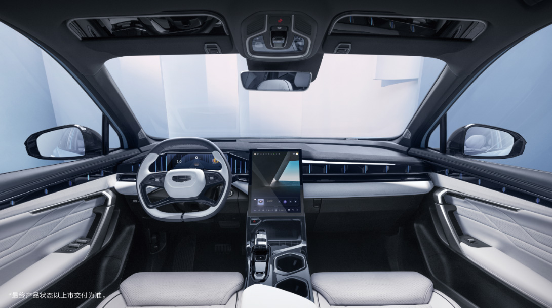 В штатное оснащение Geely Atlas L входят: виртуальная «приборка», интеллектуальный круиз-контроль, круговой видеообзор, мультимедийная система с тачскрином-«планшетом» диагональю в 13,2 дюйма, панорамная крыша и 18-дюймовые колёса.