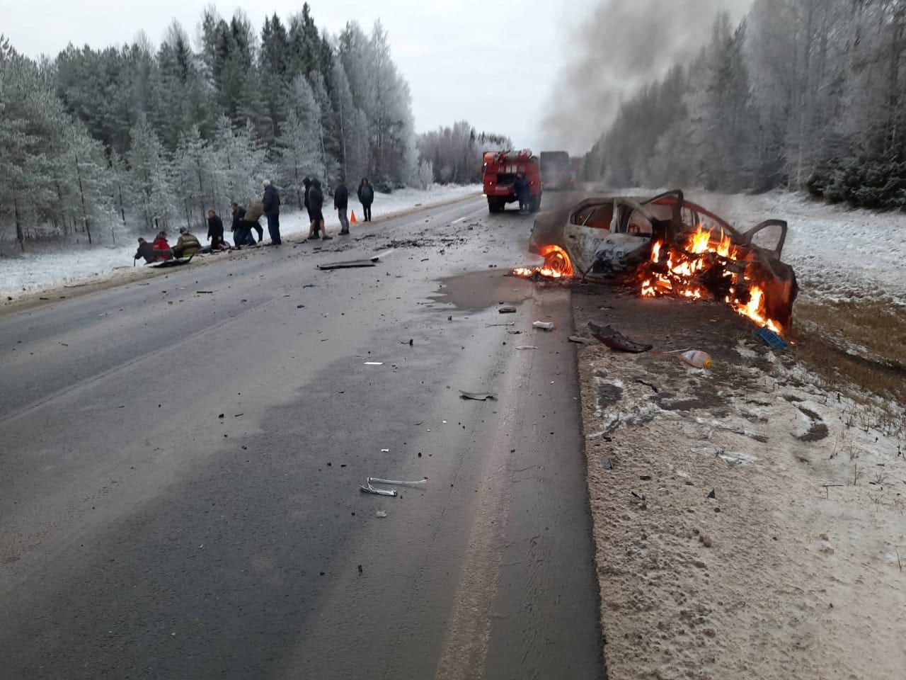 Судя по фото с места происшествия, один из автомобилей загорелся.