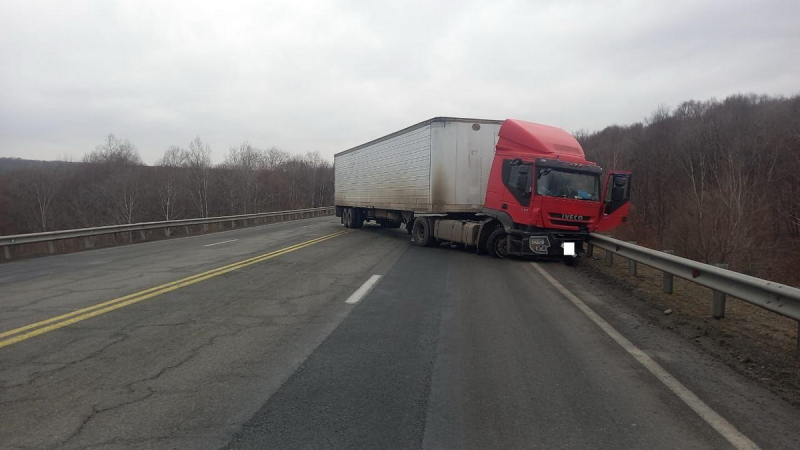 В ДТП с участием двух грузовиков и легковой «Тойоты» в Приморье пострадал один человек