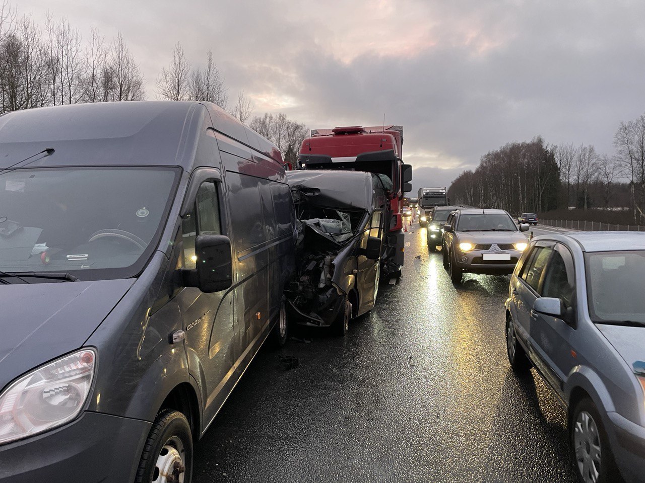 Как сообщает телеграмм-канал МВД Медиа, по предварительным данным, у микроавтобуса ГАЗ, ехавшего по маршруту Смоленск — Тверь, по каким-то причинам отсоединилось колесо, и водитель остановился, чтобы устранить неисправность. Водитель еще одного ГАЗа — грузового фургона — решил предложить свою помощь и остановился перед неисправным микроавтобусом. В это время в микроавтобус сзади въехал грузовик «Мерседес Актрос». В итоге оба припаркованных ГАЗа столкнулись друг с другом.