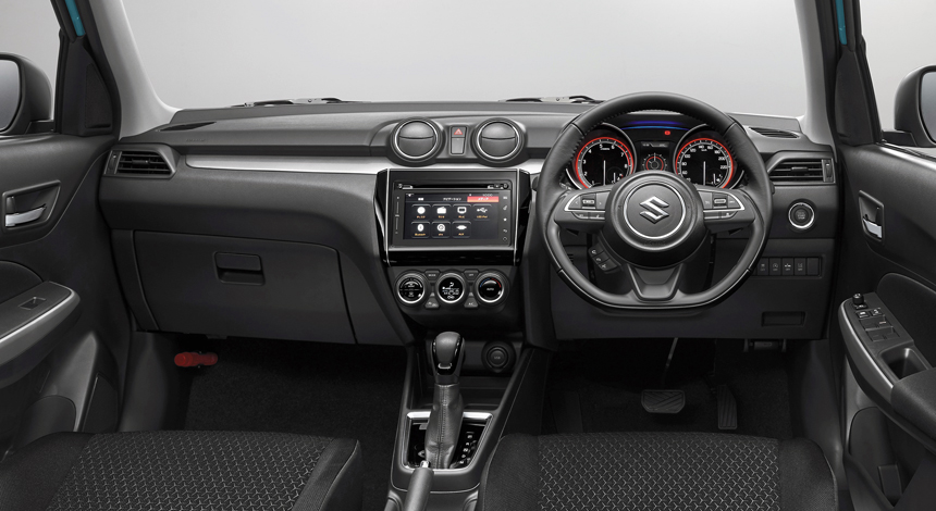 Всё в порядке у Suzuki Swift и с системами безопасности. Автомобиль, например, оборудован адаптивным круиз-контролем, парковочным ассистентом, а также системами автоматического экстренного торможения, контроля за расположением машины в полосе движения и автоматического переключения с дальнего света на ближний.