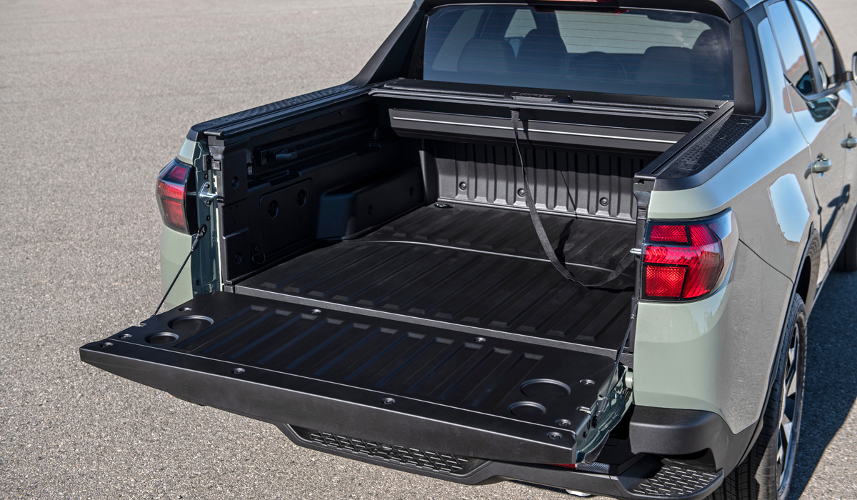 Габариты Hyundai Santa Cruz: длина — 4 971 мм, ширина — 1 905 мм, высота — 1694 мм, база — 3 005 мм. Клиренс вполне внедорожный — 218 мм. В 4-дверной кабине автомобиля установлено 2 ряда сидений с 5-ю посадочными местами.