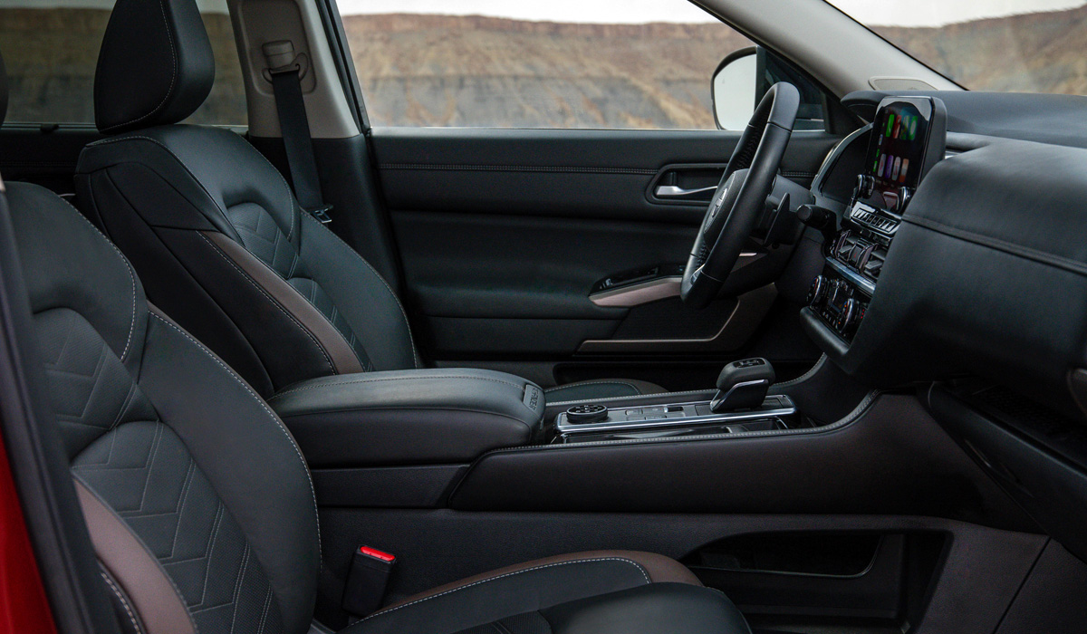 В перечне штатного оснащения Nissan Pathfinder High-Tech значатся: электронная «приборка», адаптивный круиз-контроль ProPilot, 10 подушек безопасности, передовая мультимедийная система с широким функционалом, бесконтактная зарядка для гаджетов, система кругового видеобзора, 4 USB-разъёма, обширный набор электронных «нянек» для водителя, 20-дюймовые колёса и много чего другого.