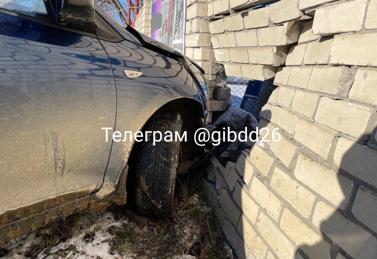 В Ставрополе пожилой водитель иномарки сломал руку, врезавшись в кирпичный забор