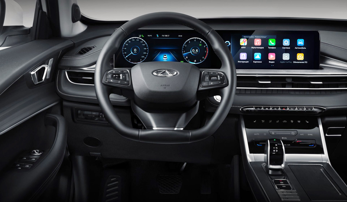В штатное оснащение Chery Tiggo 7 Pro Max Prestige входят: полностью светодиодная оптика, 2-зонный климат-контроль с сенсорным пультом управления, электрорегулировка водительского кресла, панорамная крыша, кожаный салон, 18-дюймовые колёса, электропривод 5-й двери, а также цифровая «приборка», объединённая с тачскрином мультимедийной системы. Их диагонали одинаковы — 12,3 дюйма, а HD-разрешение составляет 1920×720 пикселей.