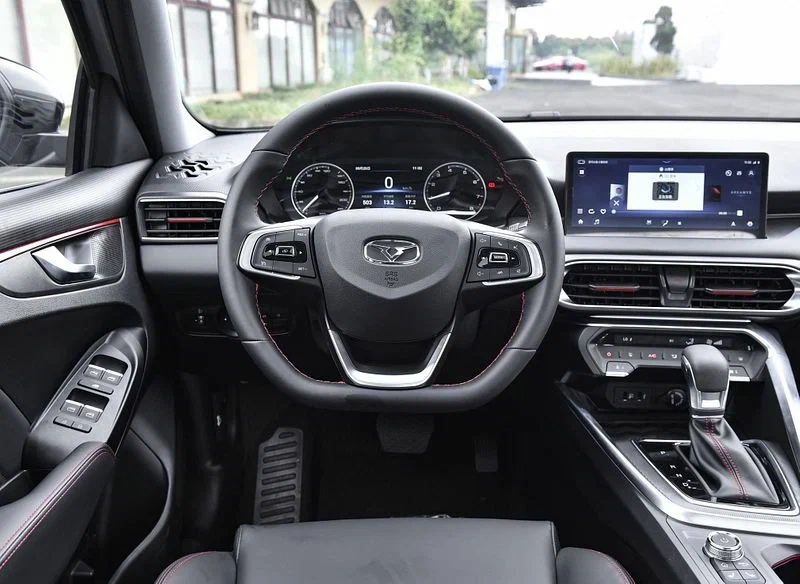 Перечень штатного оснащения автомобиля по-китайски обширен: цифровая «приборка», обогрев всех сидений, система кругового видеообзора, мультимедийная система с голосовым управлением и тачскрином диагональю в 12,4 дюйма, электронные средства безопасности, а также много чего другого.