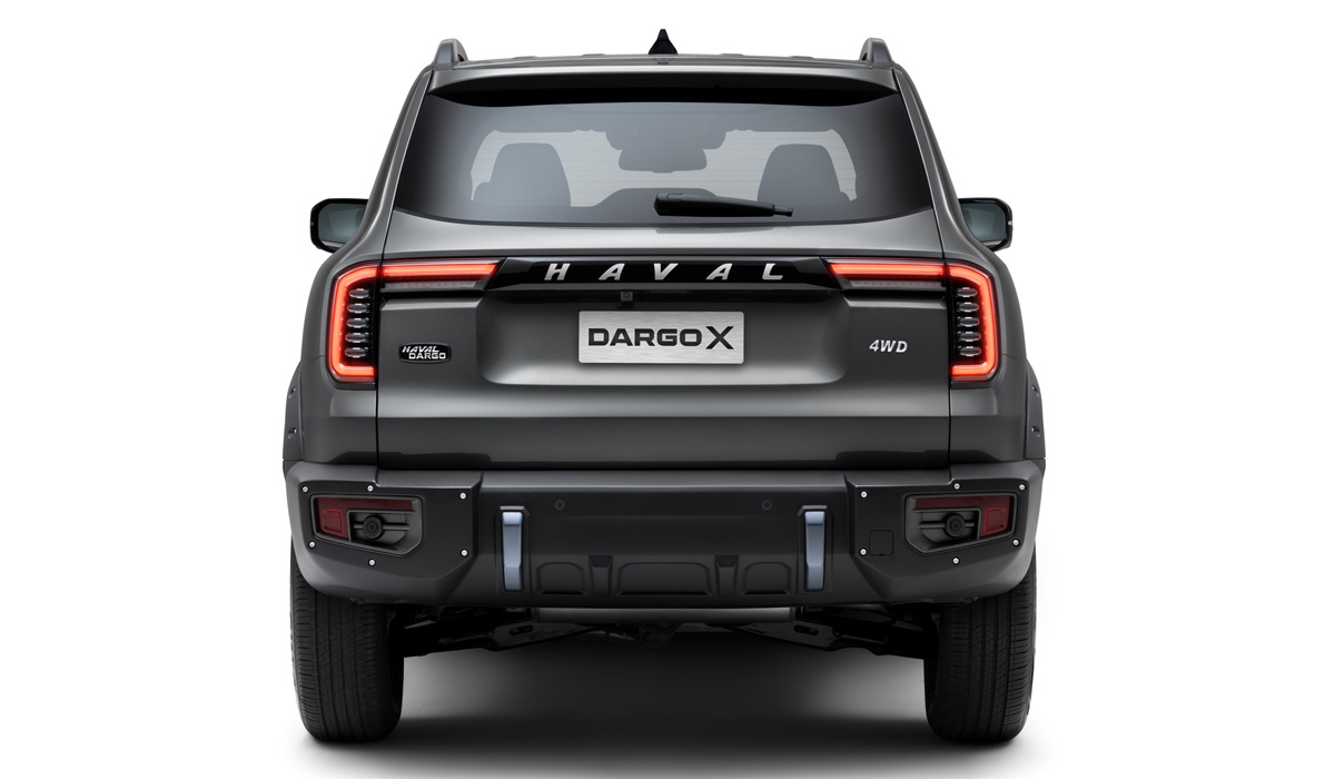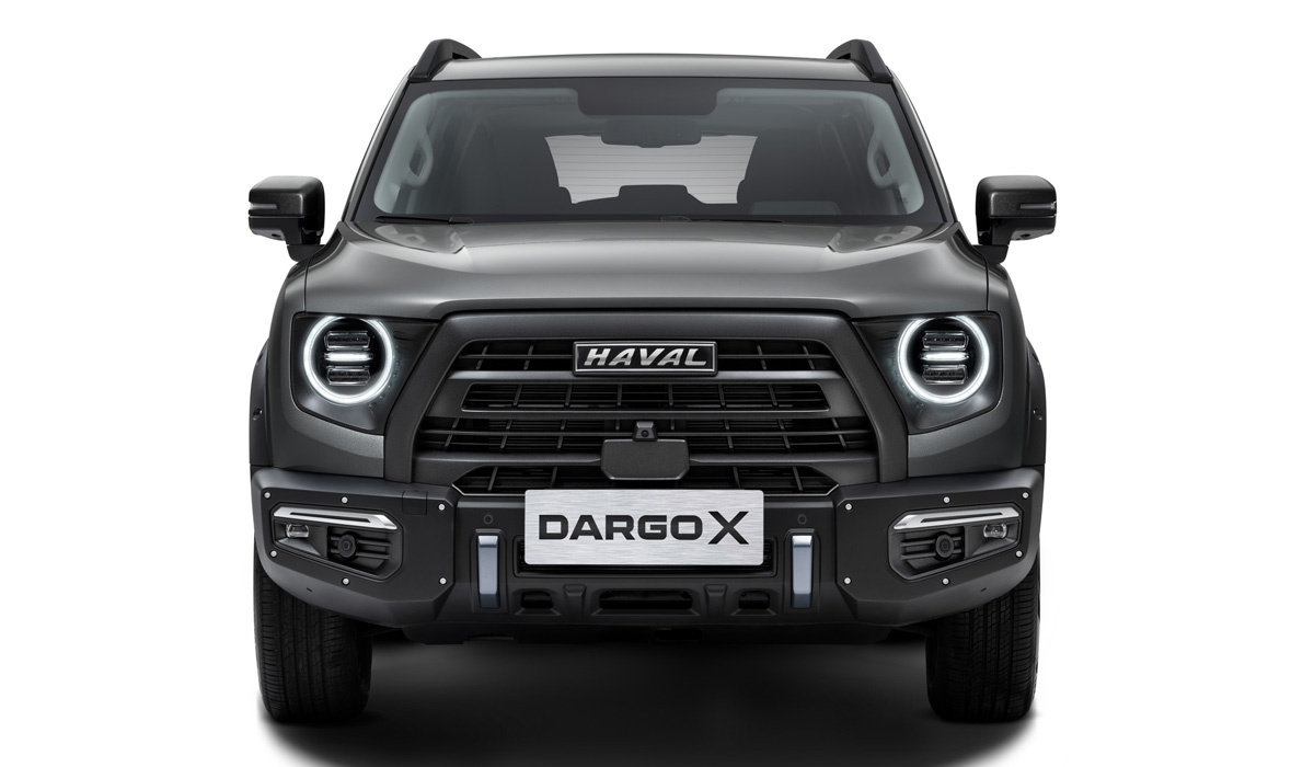 Внешне новинка, получившая название Haval Dargo X, отличается другими бамперами, лишённой хромировки массивной решёткой радиатора с изменённым рисунком, а также выставленными напоказ заклёпками крепления расширителей колёсных арок.