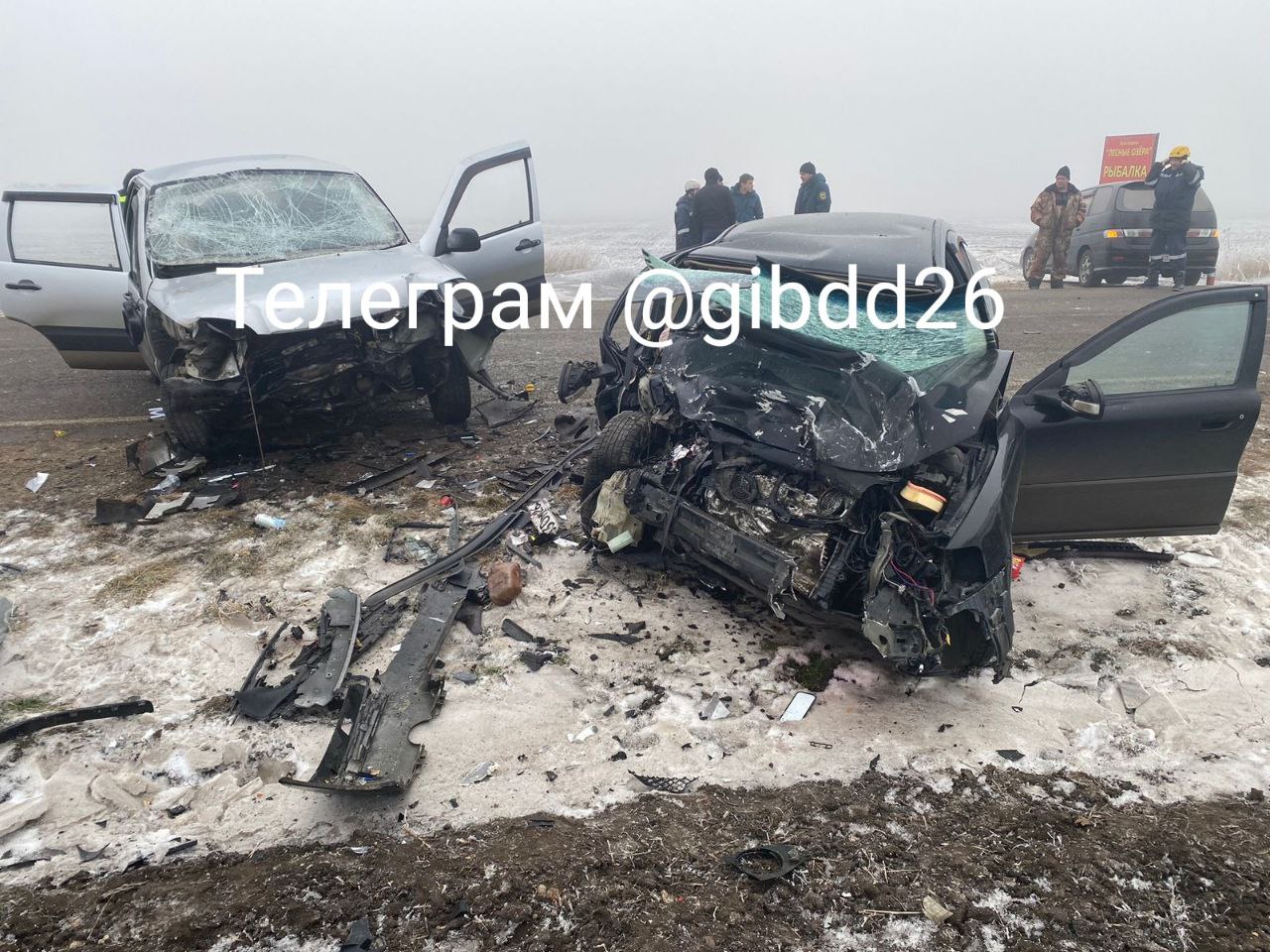 В лобовом столкновении двух автомобилей на Ставрополье погибли 2 человека, 3 пострадали