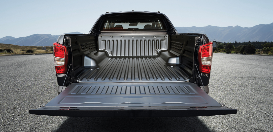 Габариты такого пикапа: длина — 5 095 мм, ширина — 1 950 мм, высота — 1 840 мм, база — 3 100 мм. Клиренс в 215 мм позволяет передвигаться даже по самым разбитым дорогам. 4-дверная кабина автомобиля вмещает 5 человек, включая водителя, а в кузове можно увезти до 400 кг груза.