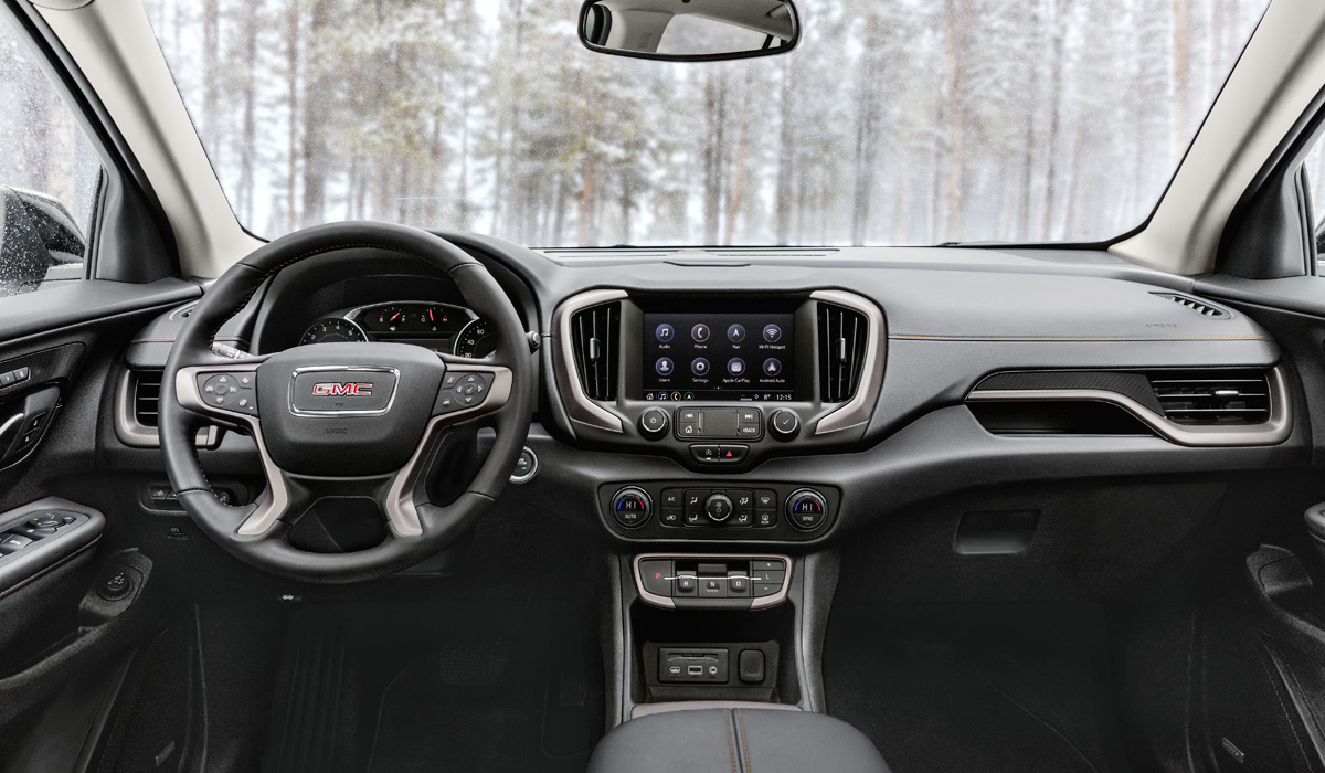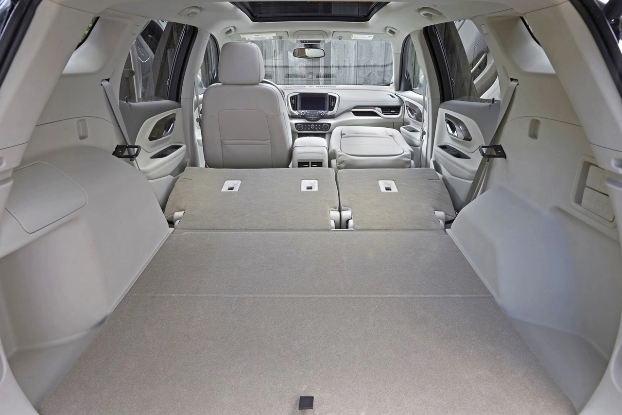 В списке штатного оснащения GMC Terrain значатся: полностью светодиодная оптика, обогрев передних кресел (кстати, снабжённых электрорегулировками) и руля, климат-контроль, электропривод багажной двери, 17-дюймовые литые колёса, характерное для автопрома США множество подстаканников и «бардачков» для разной мелочи, а также много чего ещё.