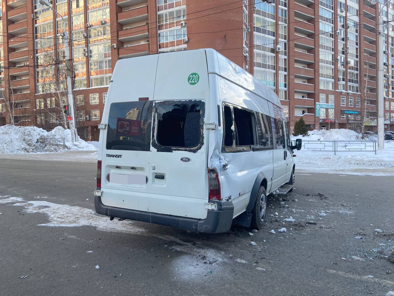 По предварительным данным, 34-летний водитель микроавтобуса «Форд Транзит», следовавший по маршруту № 220, при повороте столкнулся с пассажирским автобусом НефАЗ 51-го маршрута.