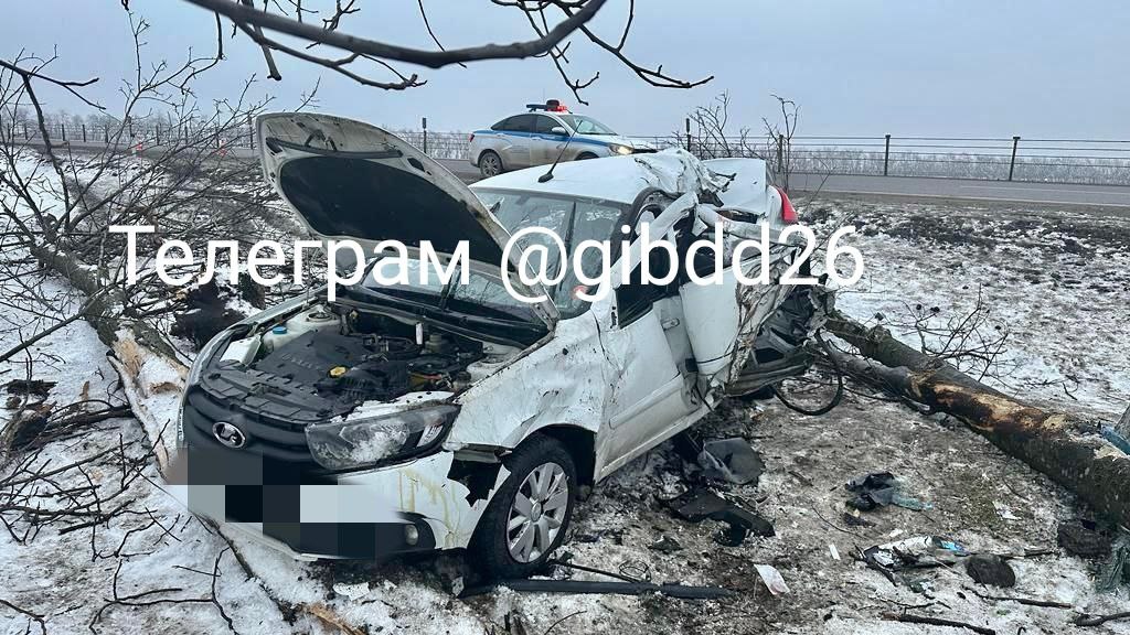 По предварительным данным, 50-летний водитель автомобиля «Лада Гранта» не справился с управлением, машина съехала с дороги и врезалась в дерево.