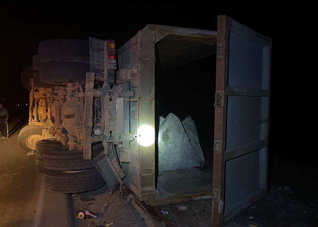 По предварительным данным, 34-летний водитель, управляя грузовым автомобилем МАЗ, по каким-то причинам не справился с управлением и врезался в отбойник, после чего машина опрокинулась.