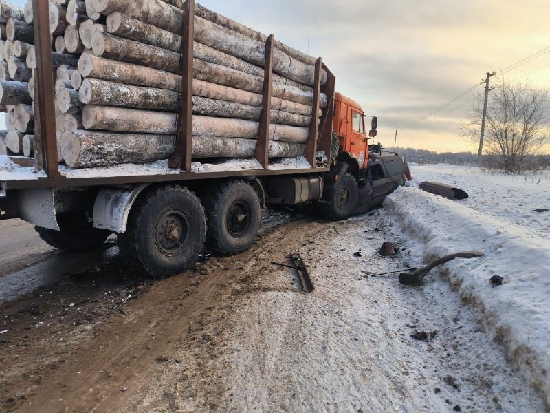 По предварительным данным, здесь столкнулись «Лада Ларгус» и лесовоз КамАЗ.