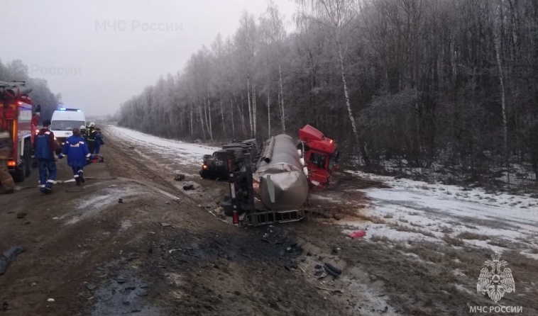 Как сообщили в региональном УМВД, автоавария произошла около 16:30. По предварительным данным, микроавтобус «Фольксваген Транспортер» по каким-то причинам выехал на встречную полосу, где столкнулся с большегрузным автомобилем. После столкновения машины съехали в правй по ходу движения кювет и опрокинулись, «Фольксваген» при этом оказался под грузовиком (на фото с места происшествия видно, что это автоцистерна).