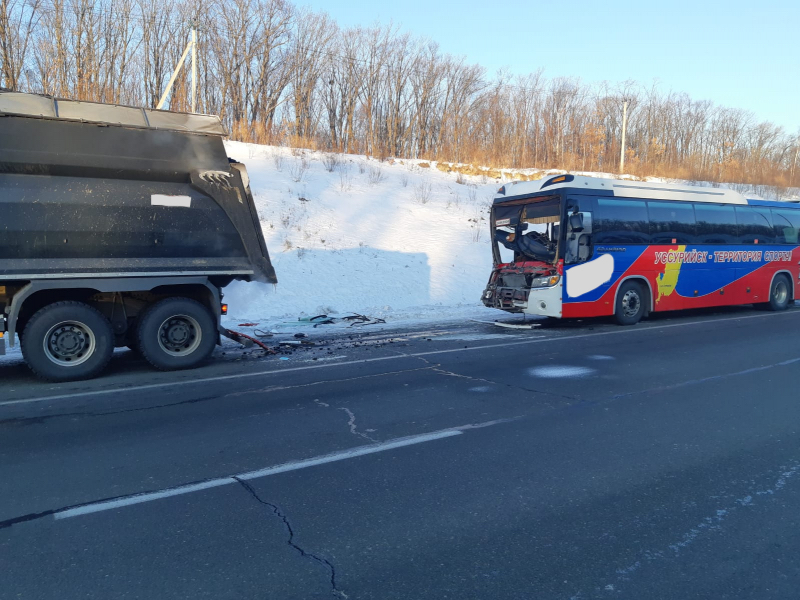 Обстоятельства столкновения автобуса и большегруза устанавливает полиция в Приморском крае.