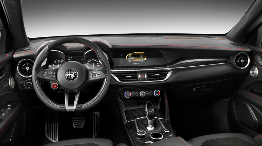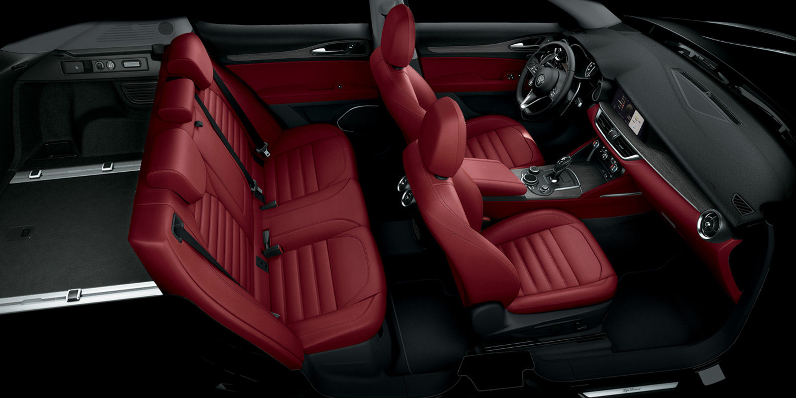 Габариты паркетника: длина — 4 687 мм, ширина — 1 903 мм, высота — 1 648 мм, база — 2 818 мм. Клиренс обычный для этого класса автомобилей — 190 мм. Несмотря на подчёркнуто спортивный вид, багажник у Alfa Romeo Stelvio вполне практичен — его объём составляет 525 л. при поднятых задних сиденьях.