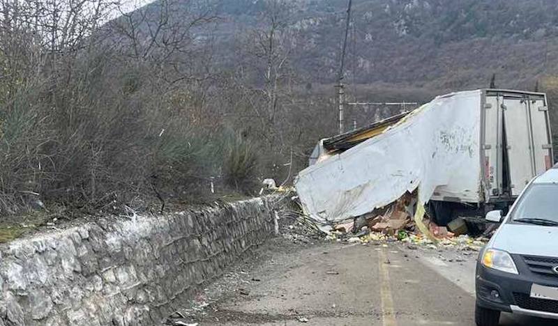 По предварительным данным, 48-летний водитель грузового автомобиля Mercedes-Benz Atego на закругленном участке трассы не смог справиться с управлением, в результате съехал с дороги, снес электрический столб и врезался в опорную стену.