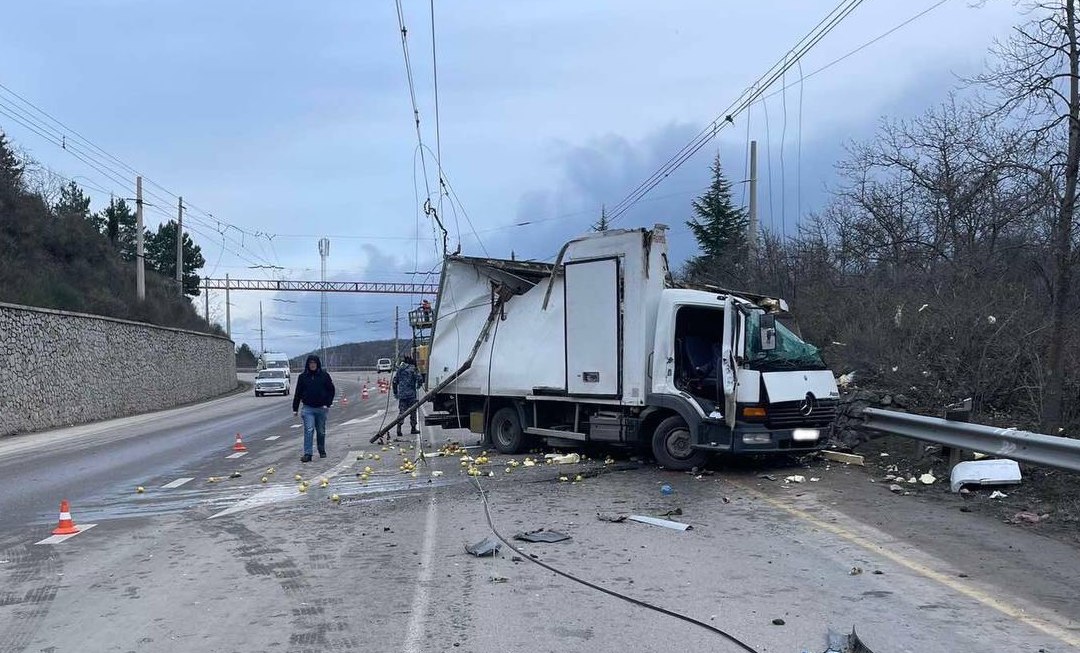 В Крыму грузовик снес столб и врезался в стену, водитель погиб