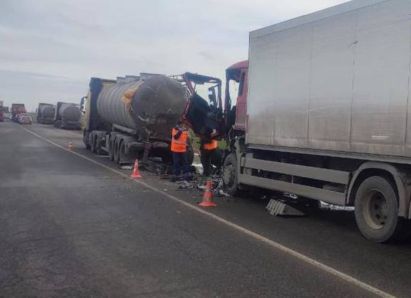 По предварительным данным, водитель большегруза MAN по каким-то причинам не смог выбрать безопасную дистанцию до ехавшего впереди попутного грузовика «Вольво» с полуприцепом-цистерной. В итоге автомобили столкнулись. От удара «Вольво» продолжил движение и, в свою очередь, столкнулся с «ГАЗелью», также ехавшей в попутном направлении.