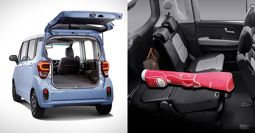 Следует отметить, что кузов компакт-вэна из Южной Кореи имеет такую же конструктивную особенность, как у китайского электромобиля FAW Bestune NAT: правая задняя дверь сделана сдвижной, причём, справа нет центральной стойки кузова, а левая — распашная.