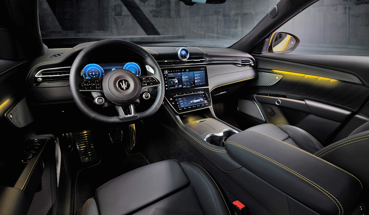 В списке штатного оснащения Maserati Grecale GT числятся: адаптивный круиз-контроль, виртуальная «приборка» диагональю в 12,3 дюйма, имеющая 3 варианта «картинки», фирменная мультимедийная система Maserati Intelligent Assistant (MIA) с тачскрином такого же размера, имеющая операционную систему Android OS, а также систему выбора настроек трансмиссии и подвески VDCM (Vehicle Dynamic Control Module). Она имеет ездовые режимы Comfort, GT, Sport и Off-Road, который рабтает только если установлена пневмоподвеска.
