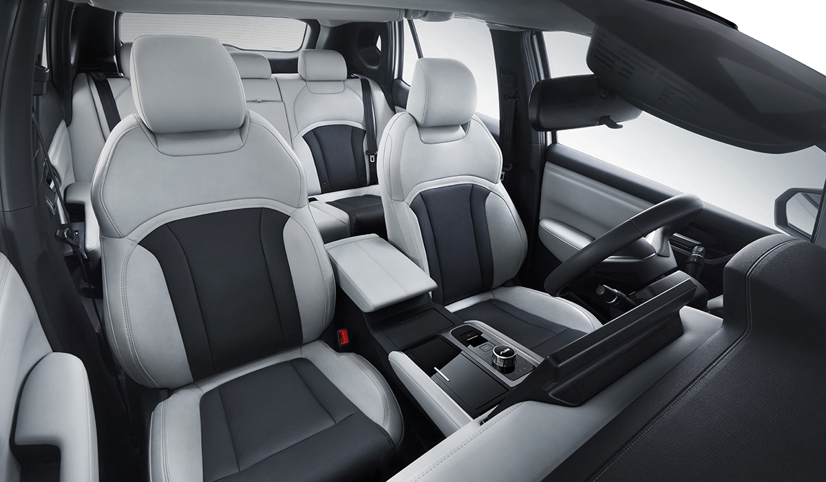 По габаритам электромобиль близок к кроссоверу Mitsubishi Outlander: длина — 4 630 мм, ширина — 1 920 мм, высота — 1 728 мм, база — 2 830 мм. Клиренс не слишком велик — 170 мм, а вот багажник, с учётом размеров кроссовера и того, что часть объёма кузова «съел» аккумулятор, очень неплох: 368 л. при поднятых задних сиденьях и 1 102 л. — при сложенных.