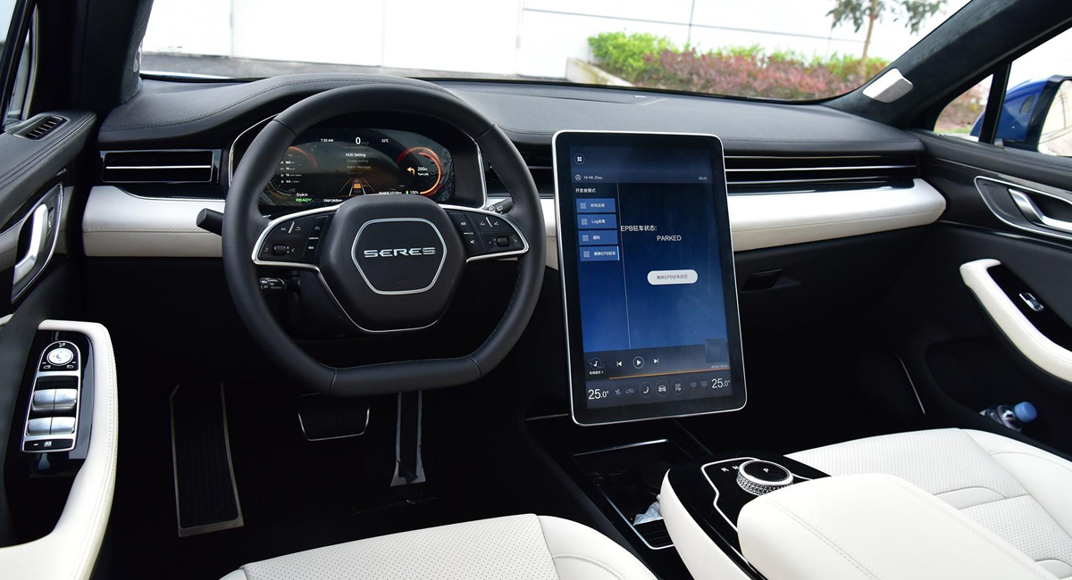 В списке штатного оснащения Seres F5 значатся: виртуальная «приборка», проекционный экран, 2-зонный климат-контроль, передние кресла с обогревом и электрорегулировками, электромеханический «ручник», мультимедийная система с тачскрином-«планшетом» диагональю в 17 дюймов, имеющая операционную систему Ali OS 2.0, выход в интернет и голосовое управление, а также много чего другого.