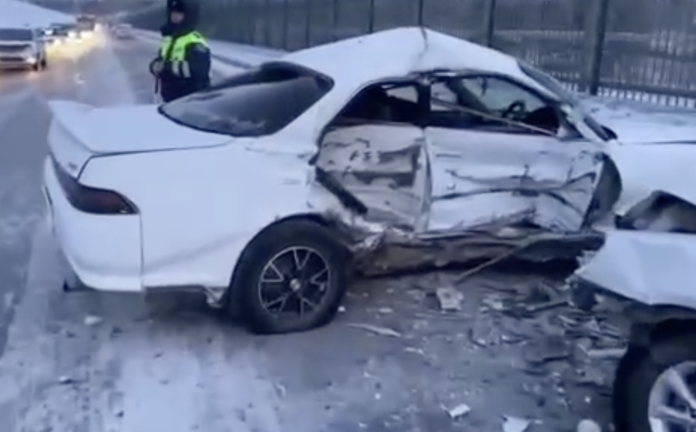 По предварительной информации, автомобиль «Тойота Марк 2», по каким-то причинам выехавший на встречную полосу, столкнулся там с другой «Тойотой» — «Премио».