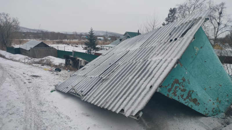 В Приморье иномарка врезалась в автобусную остановку и опрокинулась в кювет. В ДТП пострадал пожилой пешеход