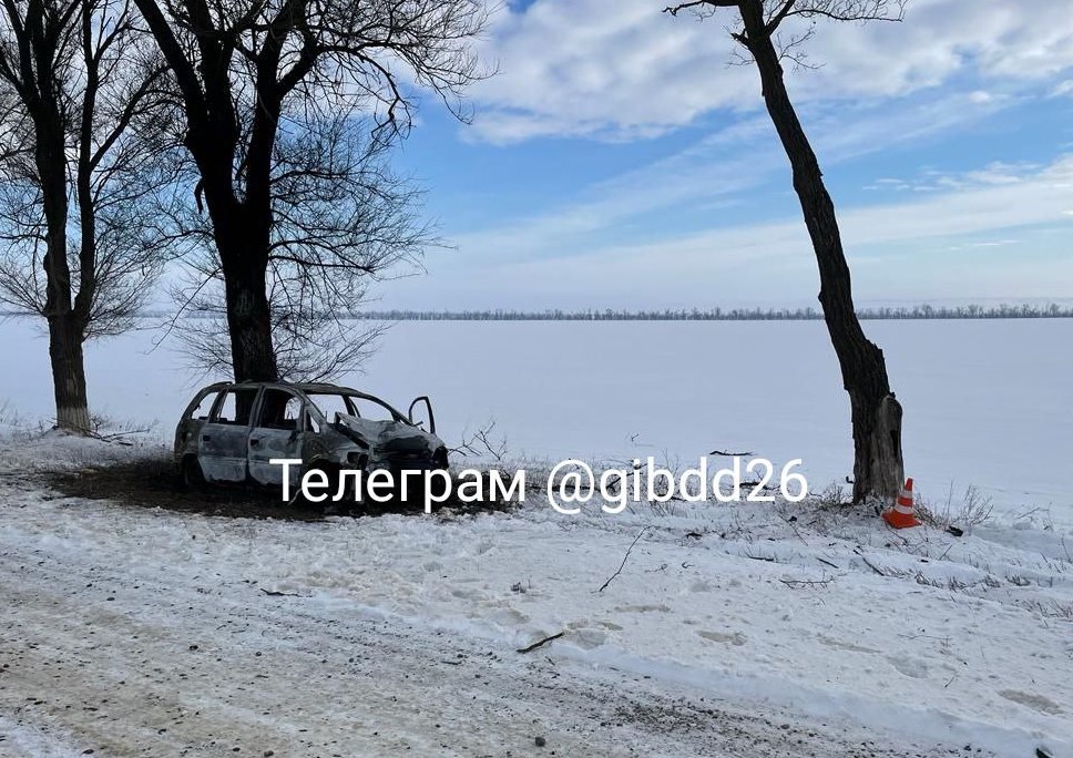На Ставрополье автомобиль врезался в дерево и загорелся