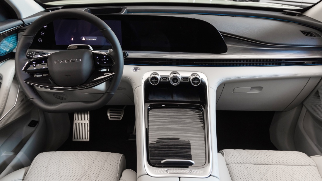 Салон нового Exeed RX также приятно удивляет — центральная панель здесь оборудована 24,6 дюймовым экраном, на который выводится вся актуальная информация об автомобиле. Также с помощью дисплея осуществляется управление встроенной аудиосистемой, которая включает в себя сразу 14 динамиков и обеспечивает звучание премиум класса.