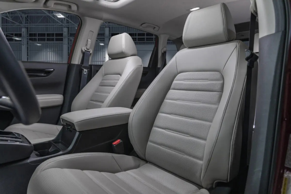 Список штатного оснащения кроссовера очень богат. В него вошли: цифровая «приборка» диагональю в 7 дюймов (но спидометр у неё аналоговый), мультимедийная система с «парящим» 9-дюймовым тачскрином, поддерживающая сервисы Apple CarPlay и Android Auto, 2-зонный климат-контроль, электромеханический «ручник», центральный подлокотник с багажным отсеком ёмкостью в 9 л., панорамный люк и много чего другоуго.