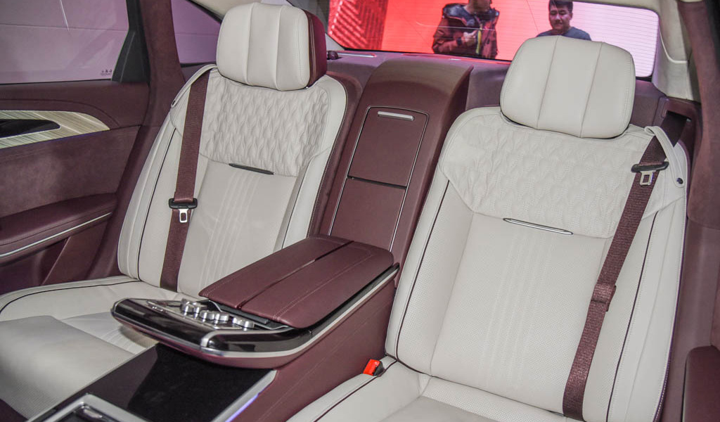 Просторный салон седана, отделанный дорогой кожей и натуральным шпоном из ценных пород дерева — 4-местный: сзади установлена пара больших раздельных кресел, имеющих широкий диапазон электрорегулировок, обогрев, массаж и вентиляцию. Обшивка всех сидений украшена выполненной вручную прострочкой.
