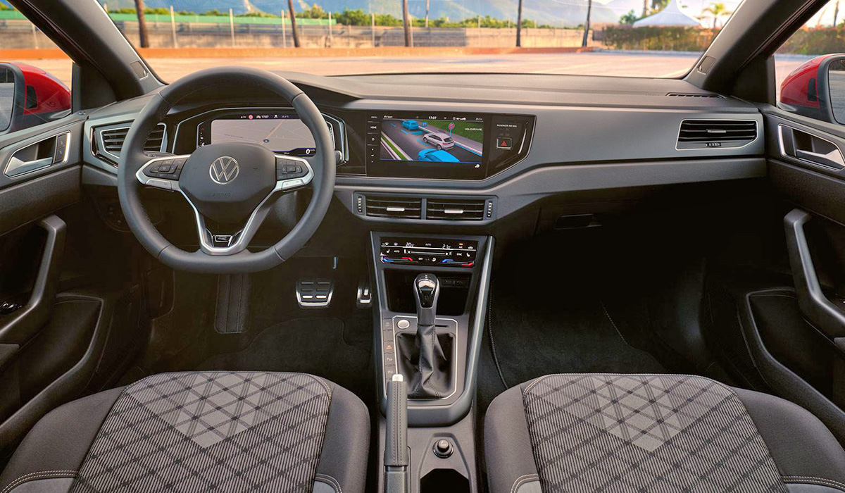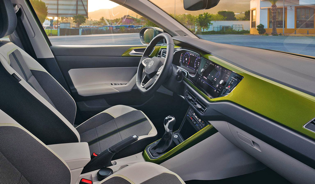 Перечень штатного оснащения Volkswagen Taigo весьма богат. В него входят: цифровая «приборка» диагональю в 10,25 дюйма, на которую можно вывести карту навигатора, климат-контроль, передние кресла с обогревом, беспроводная зарядка для гаджетов, мультимедийная система MIB3 с Bluetooth-гарнитурой и тачскрином диагональю в 9,2 дюйма, а также панорамная крыша.
