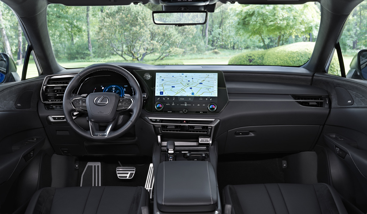 Список штатного оснащения нового Lexus RX полностью соответствует современному автомобилю премиум-класса: виртуальная «приборка», 2-зонный климат-контроль, фирменная мультимедийная система Lexus Link Pro с тачскрином-«планшетом» диагональю в 14 дюймов, имеющая голосовое управление, навигатор и связь со смартфоном водителя, кожаный салон, панорамная крыша с люком, а также много чего другого.