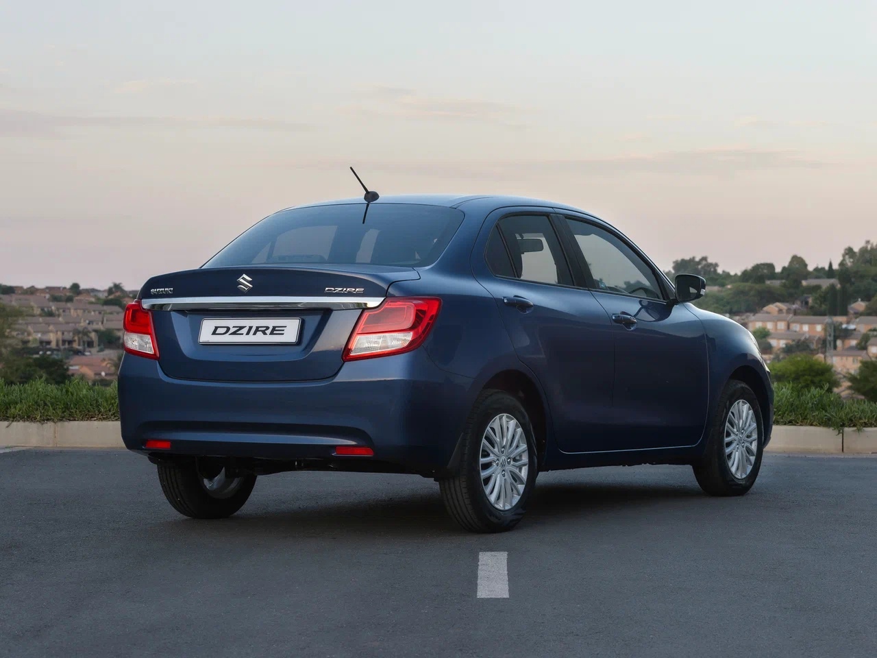 Габариты Suzuki DZire: длина — 3 995 мм, ширина — 1 735 мм, высота — 1 515 мм, база — 2 450 мм. Объём багажника невелик — 378 л., а клиренс в 145 мм подходит только для хороших дорог. Салон — полноценно 5-местный, но задний «диван» слегка тесноват. Водительское место расположено справа, так как автомобиль выпускается в Индии — на совместном предприятии Maruti Suzuki.
