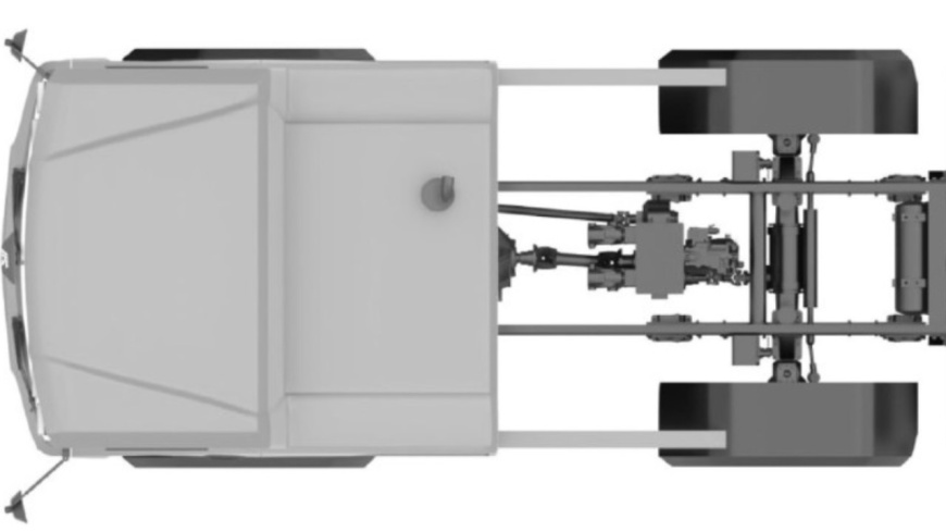 «Изюминкой» в конструкции ходовой части новинки стало то, что все её односкатные колёса сделаны управляемыми. Это облегчает коммунальной машине маневрирование в ограниченном пространстве городских улиц. Кроме того, у неё имеется система полного привода, а вот вала отбора мощности на патентных изображениях автомобиля почему-то не видно.