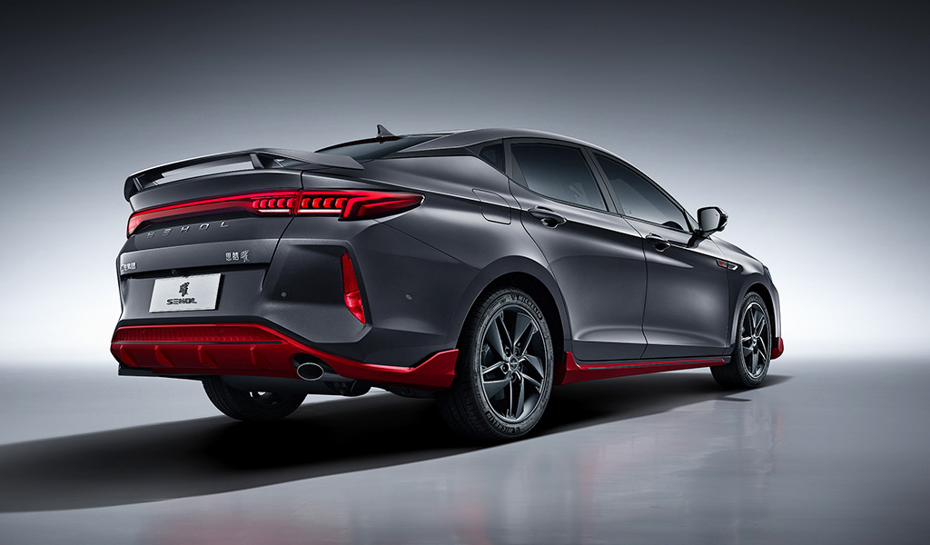 Но, если внешне JAC J7 — это элегантность бизнес-класса, то JAC Sehol Yao — в чистом виде спортивная агрессия. Чего только стоят гранёный передний бампер с имитацией сплиттера, солидный спойлер на багажной двери, а также защитный обвес и диффузор контрастного с окраской кузова красного цвета.