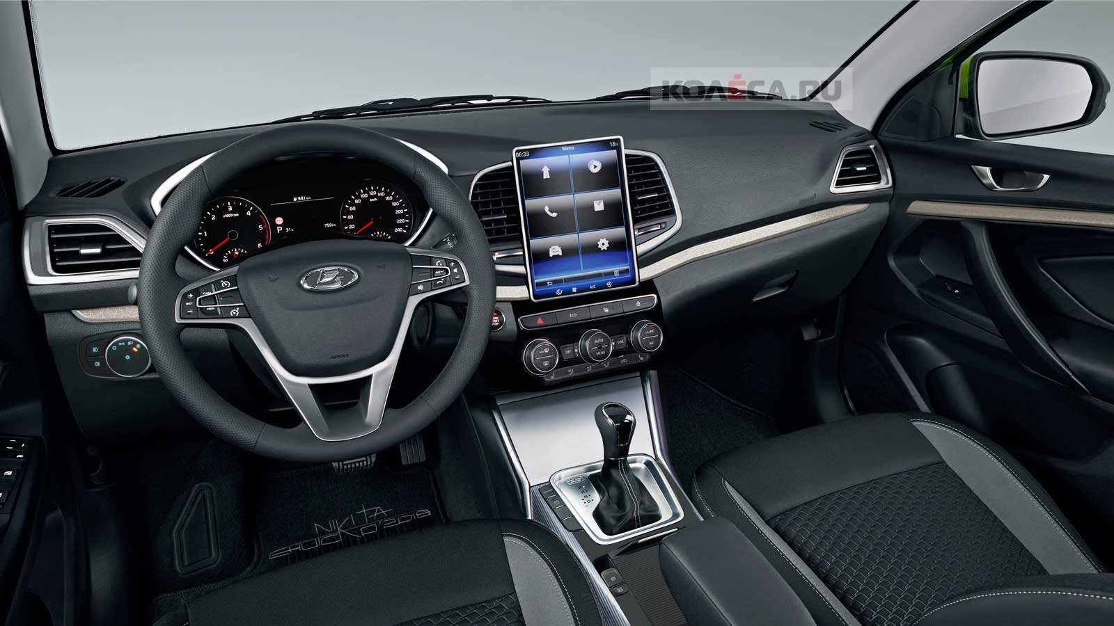 Топовая комплектация Lada Vesta NG Techno дополнительно получила виртуальную «приборку» диагональю в 10,25 дюйма, современную мультимедийную систему Lada Enjoy Vision Pro с вертикально ориентированным тачскрином-«планшетом» диагональю в 10,4 дюйма, а также 2-цветную окраску кузова.