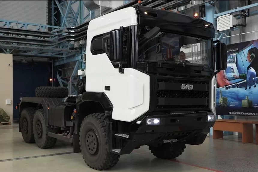 Напоминаем, что новый автомобиль представляет собой седельный тягач с колёсной формулой 6×6. По уточнённым данным, его полная масса составляет 35,7 тонны, а полная масса буксируемого полуприцепа — 22,1 тонны.