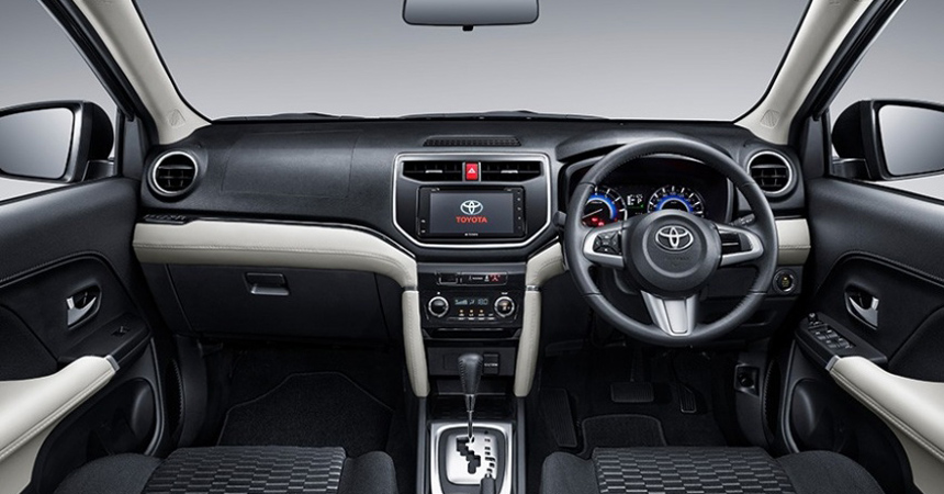 В перечне штатного оснащения Toyota Rush значатся: светодиодная оптика, 4 подушки безопасности, обогрев передних кресел, климат-контроль, мультимедийная система с тачскрином диагональю в 7 дюймов и ряд других опций.