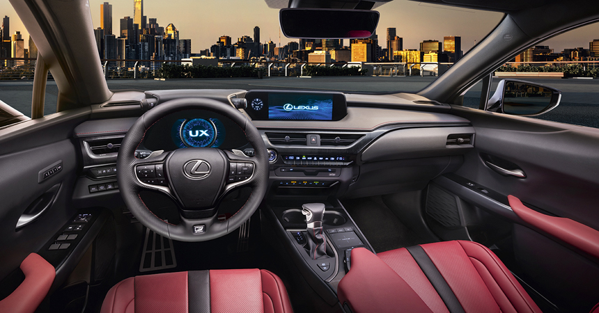 Оснащён Lexus UX так, как и полагается премиальному автомобилю из Японии: полностью светодиодная оптика, виртуальная «приборка», передние кресла с электрорегулировками, обогревом и вентиляцией, мультимедийная система с большим тачскрином и широким функционалом, климат-контроль, фирменный набор электронных систем безопасности и много чего ещё.
