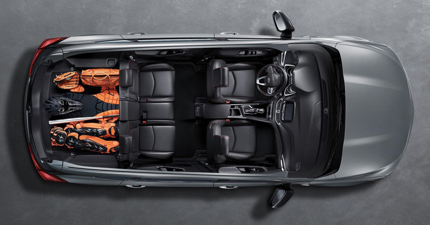 Объём багажника российской новинки варьируется в широких пределах: при поднятых задних сиденьях он составляет всего 109 л., но, если их сложить, то возрастает до 480 л. А при сложенном сиденье 2-го ряда он составляет уже 1 520 л.