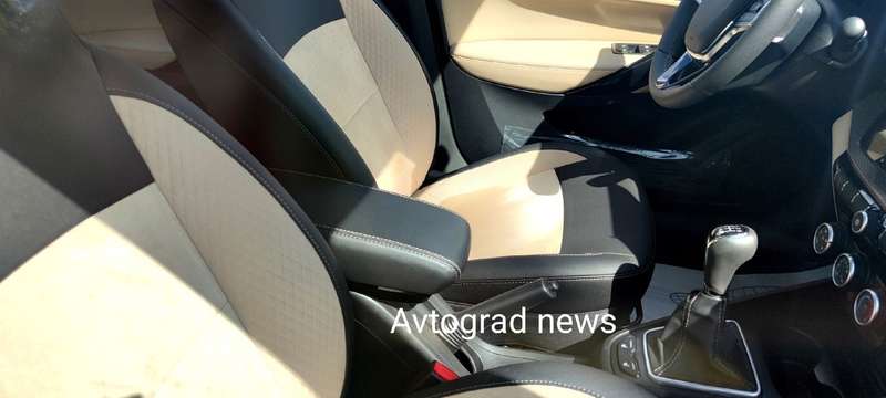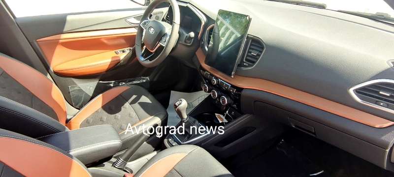 В салоне обнаружились такие же передние кресла, как у «дореформенных» Lada Vesta — с развитой боковой поддержкой и 2-цветной чёрно-оранжевой обшивкой. А вот дверные карты и «торпедо», теперь окрашенные в точно такие же цвета, как и сиденья, изменились.